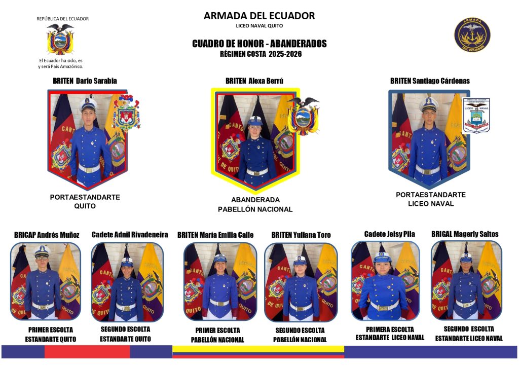 𝗗𝗲𝘀𝗶𝗴𝗻𝗮𝗰𝗶𝗼́𝗻 𝗔𝗯𝗮𝗻𝗱𝗲𝗿𝗮𝗱𝗼𝘀, 𝗣𝗼𝗿𝘁𝗮𝗲𝘀𝘁𝗮𝗻𝗱𝗮𝗿𝘁𝗲𝘀 𝘆 𝗘𝘀𝗰𝗼𝗹𝘁𝗮𝘀 𝗱𝗲𝗹 𝗮𝗻̃𝗼 𝗹𝗲𝗰𝘁𝗶𝘃𝗼 𝟮𝟬𝟮𝟱-𝟮𝟬𝟮𝟲 𝗥𝗲́𝗴𝗶𝗺𝗲𝗻 𝗖𝗼𝘀𝘁𝗮.