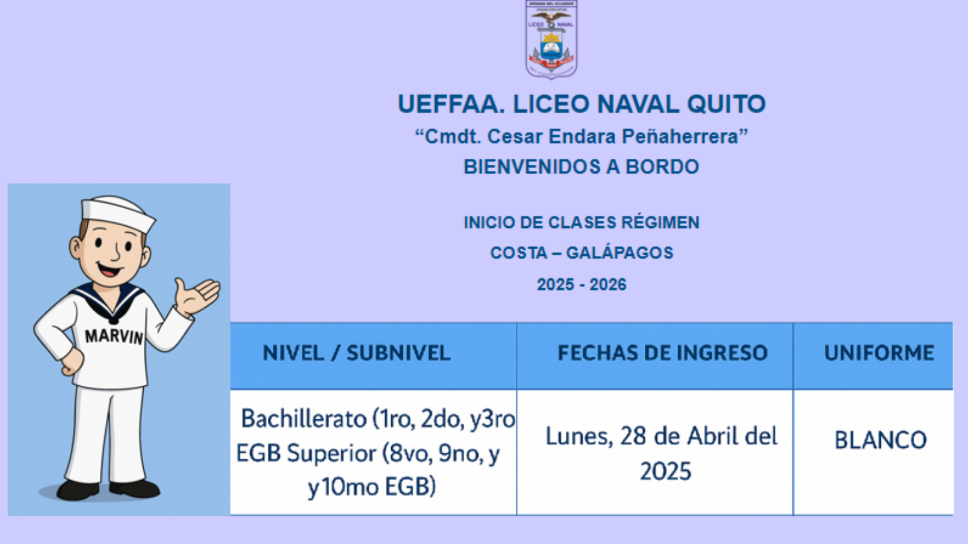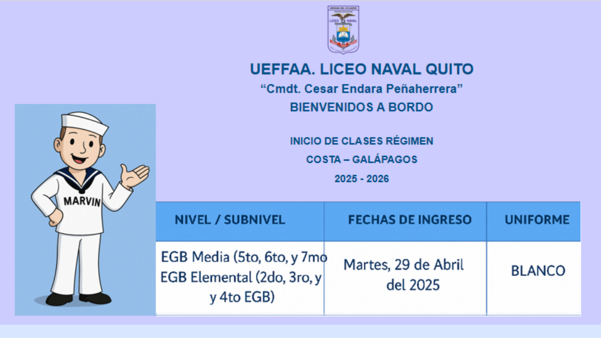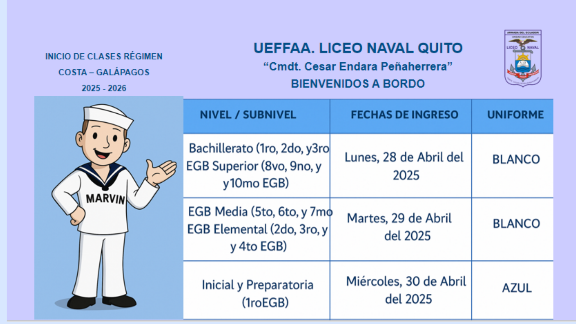 INICIO DE CLASES RÉGIMEN COSTA – GALÁPAGOS